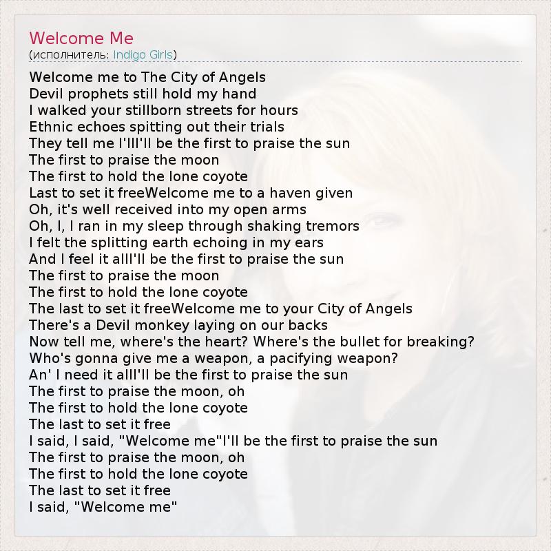 А как ты думаешь, о чем песня "Welcome Me" ?