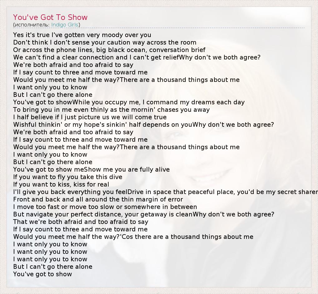 А как ты думаешь, о чем песня "You've Got To Show" ?