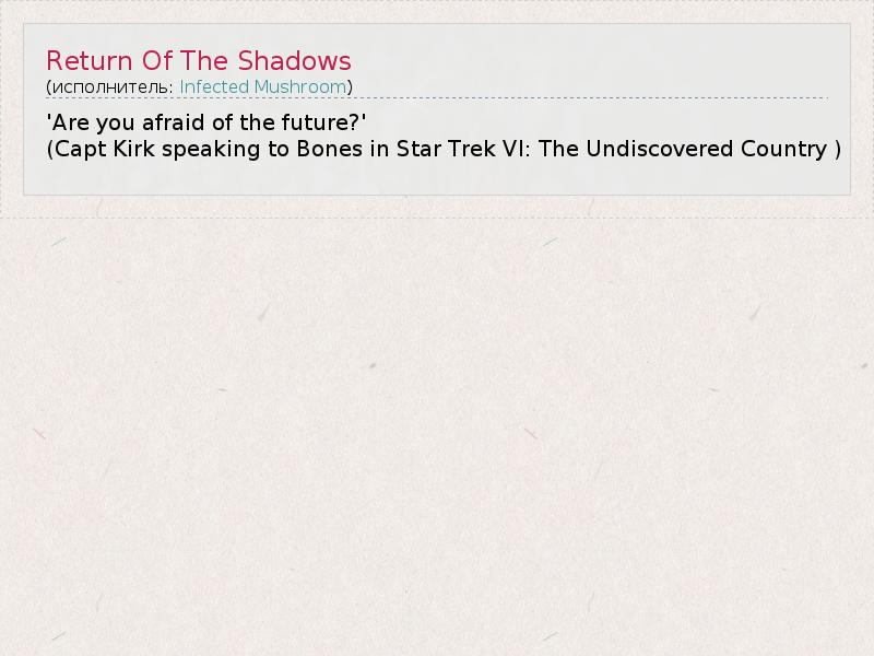 А как ты думаешь, о чем песня "Return Of The Shadows" ?