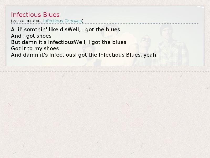 А как ты думаешь, о чем песня "Infectious Blues" ?