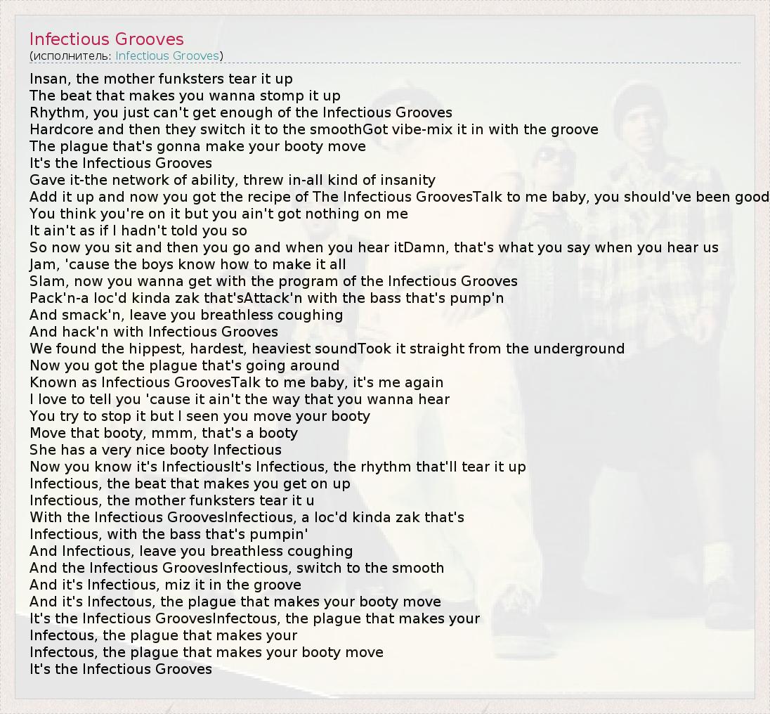 А как ты думаешь, о чем песня "Infectious Grooves" ?