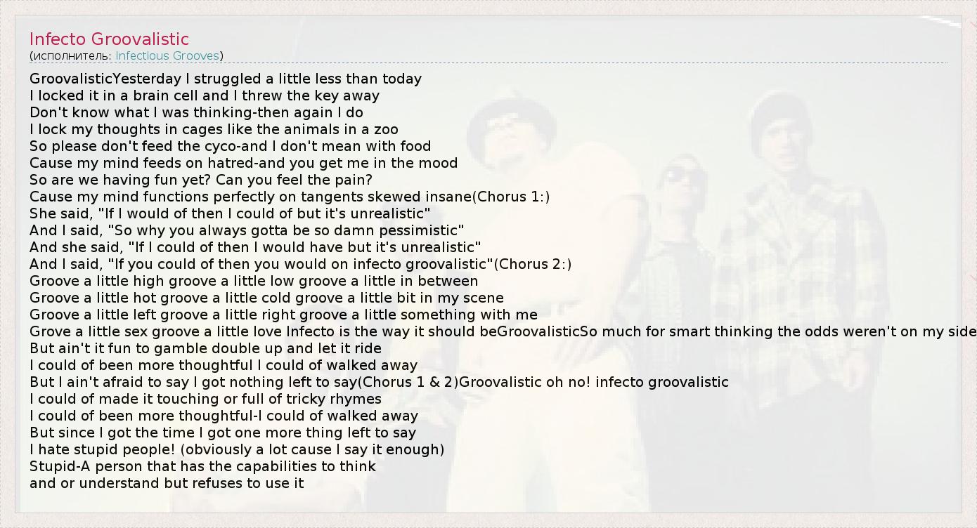 А как ты думаешь, о чем песня "Infecto Groovalistic" ?