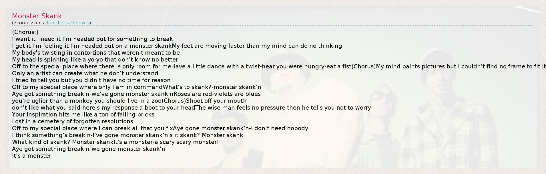 А как ты думаешь, о чем песня "Monster Skank" ?