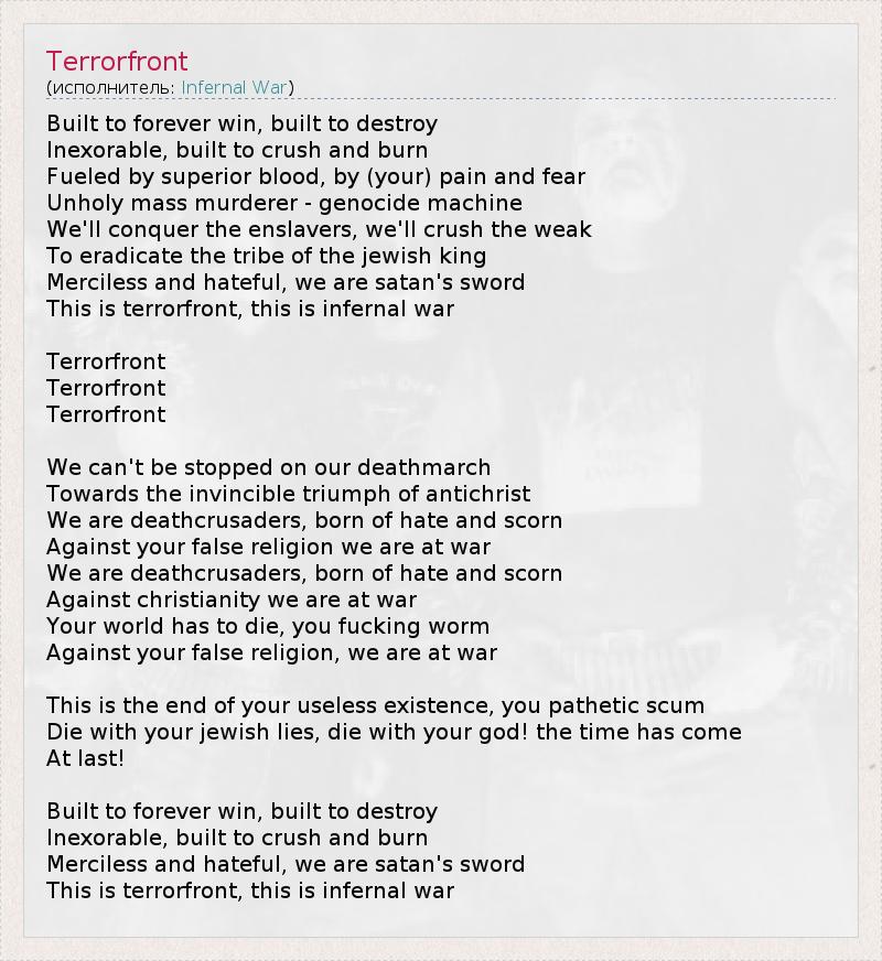 This is terrorfront, this is infernal war