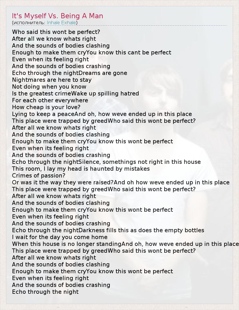 А как ты думаешь, о чем песня "It's Myself Vs. Being A Man" ?