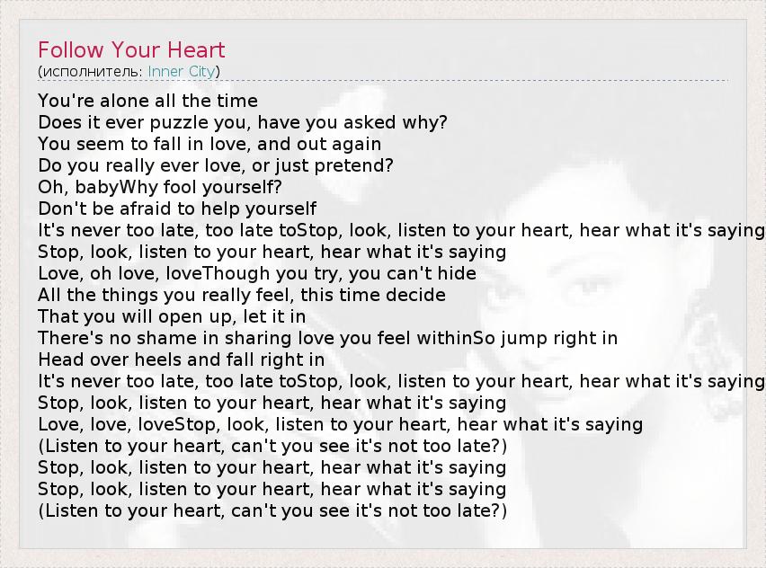 А как ты думаешь, о чем песня "Follow Your Heart" ?