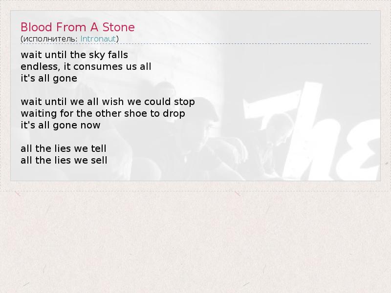 А как ты думаешь, о чем песня "Blood From A Stone" ?