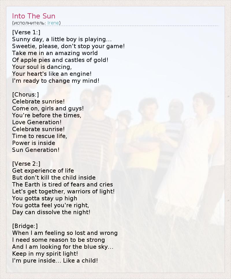 А как ты думаешь, о чем песня "Into The Sun" ?
