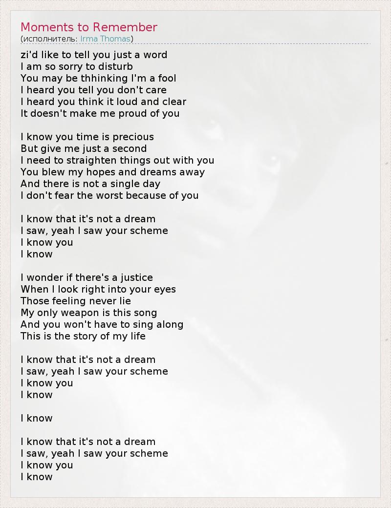 А как ты думаешь, о чем песня "Moments to Remember" ?
