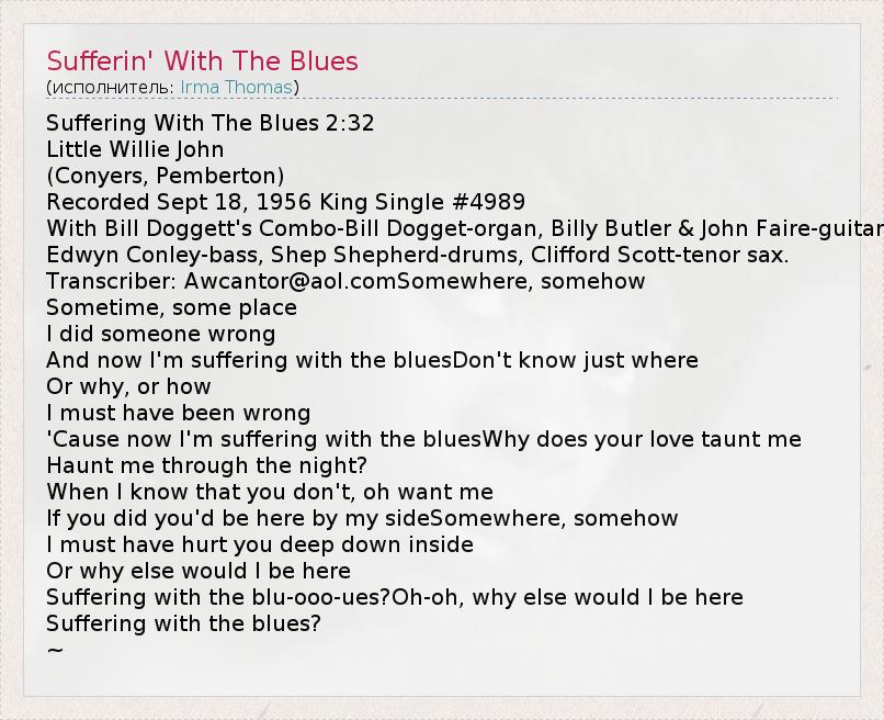 А как ты думаешь, о чем песня "Sufferin' With The Blues" ?