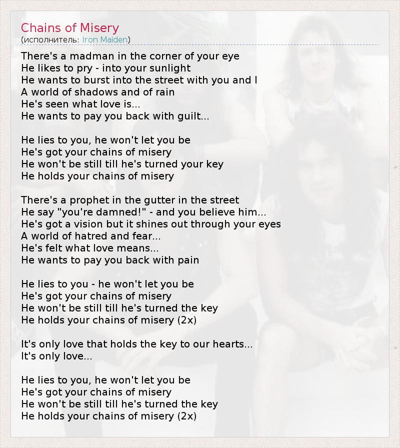А как ты думаешь, о чем песня "Chains of Misery" ?