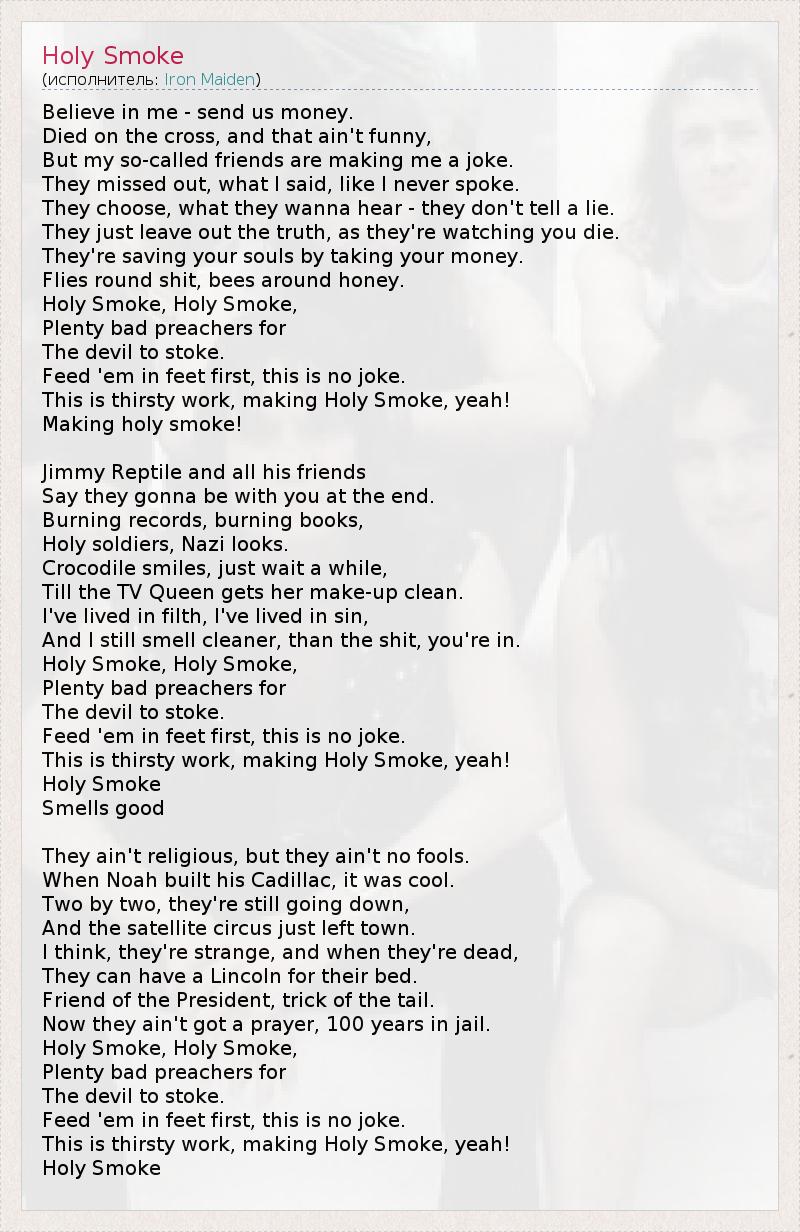 А как ты думаешь, о чем песня "Holy Smoke" ?