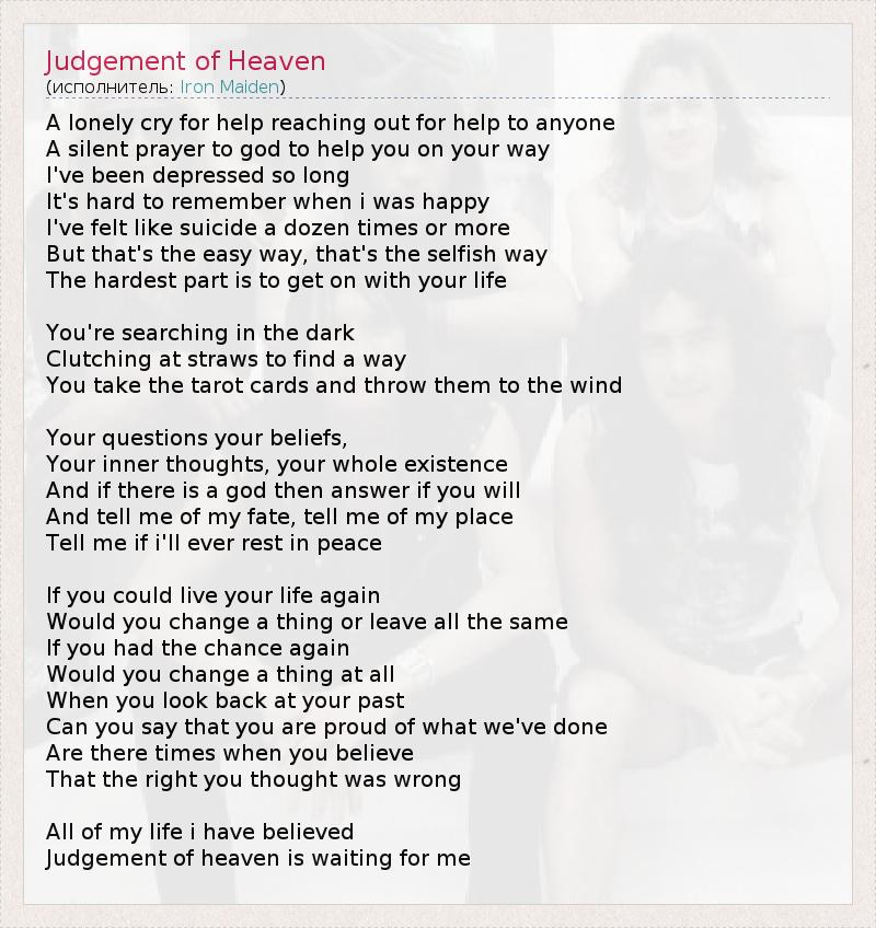 А как ты думаешь, о чем песня "Judgement of Heaven" ?