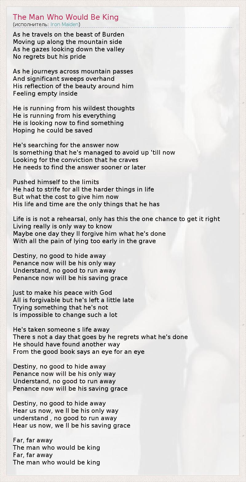 А как ты думаешь, о чем песня "The Man Who Would Be King" ?