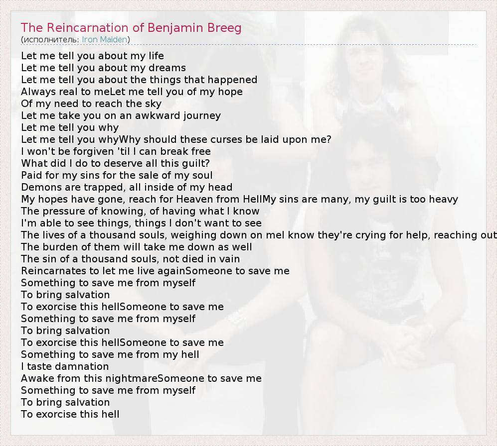 А как ты думаешь, о чем песня "The Reincarnation of Benjamin Breeg" ?