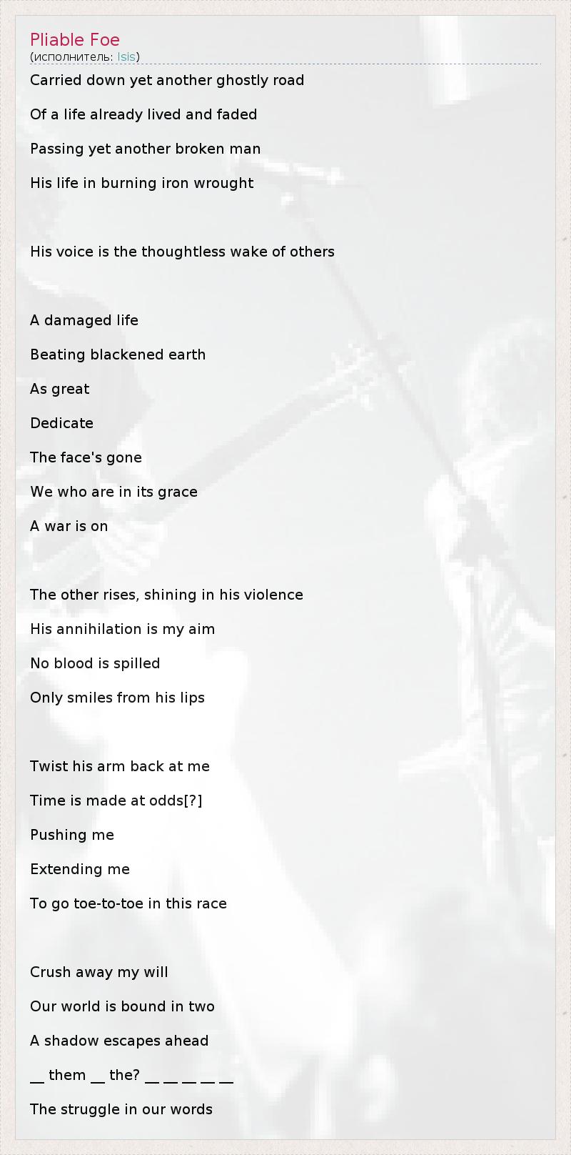А как ты думаешь, о чем песня "Pliable Foe" ?