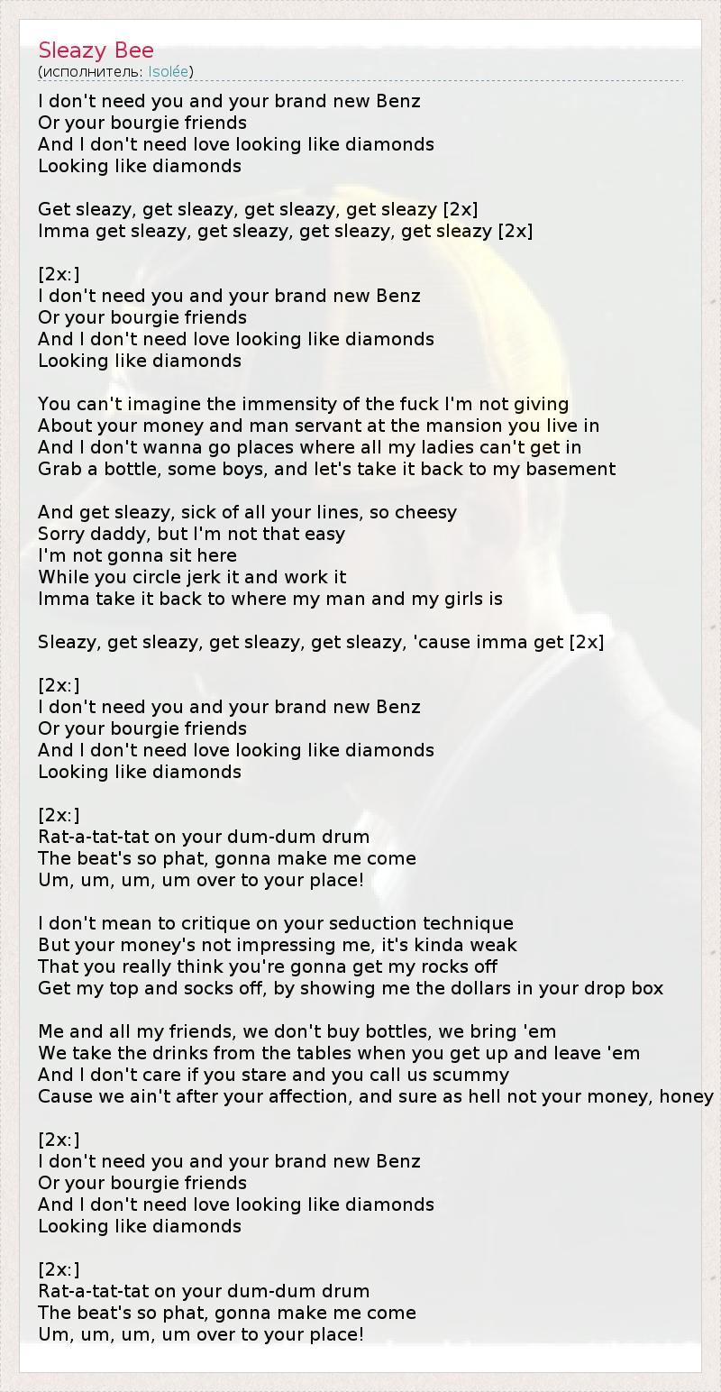 Get sleazy, get sleazy, get sleazy, get sleazy [2x]