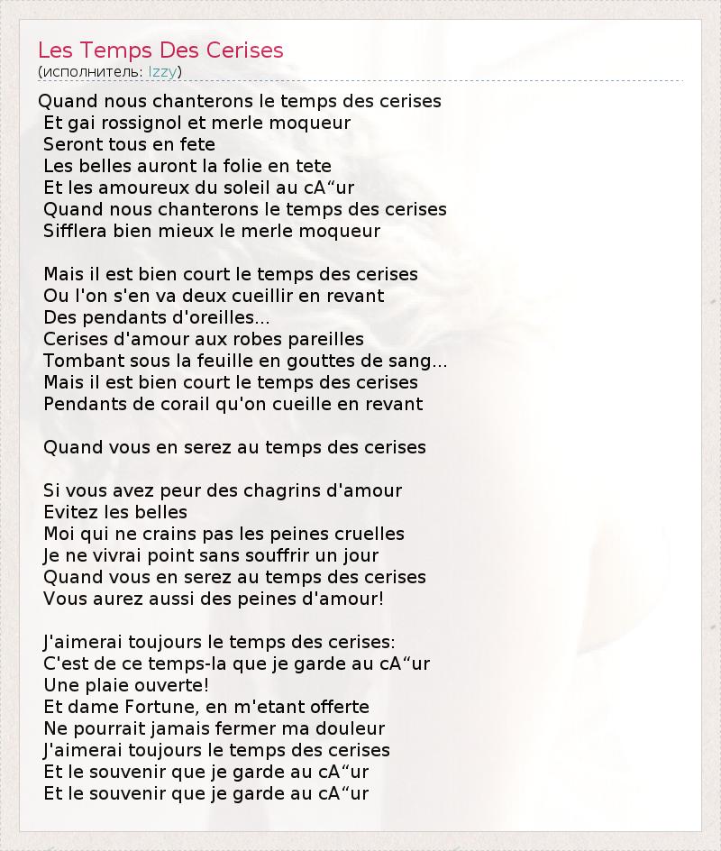 ГлавнаяИсполнителиIzzyLes Temps Des Cerises