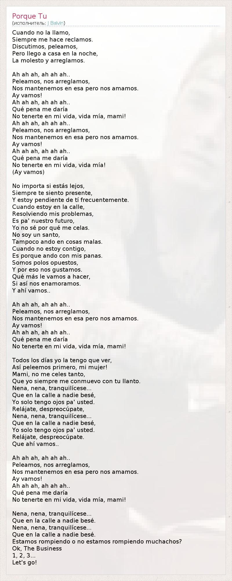 А как ты думаешь, о чем песня "Porque Tu" ?