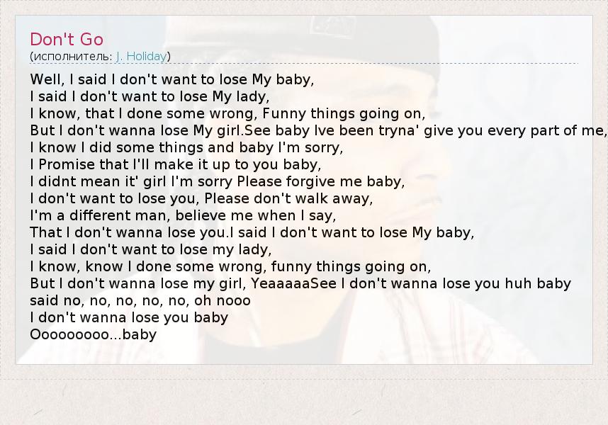 That I don't wanna lose you.I said I don't want to lose My baby,