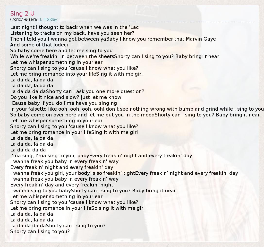 I wanna sing to you babyShorty can I sing to you? Baby bring it near