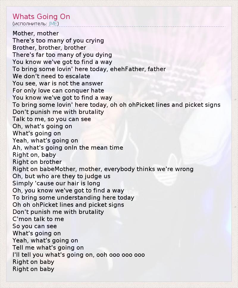 А как ты думаешь, о чем песня "Whats Going On" ?
