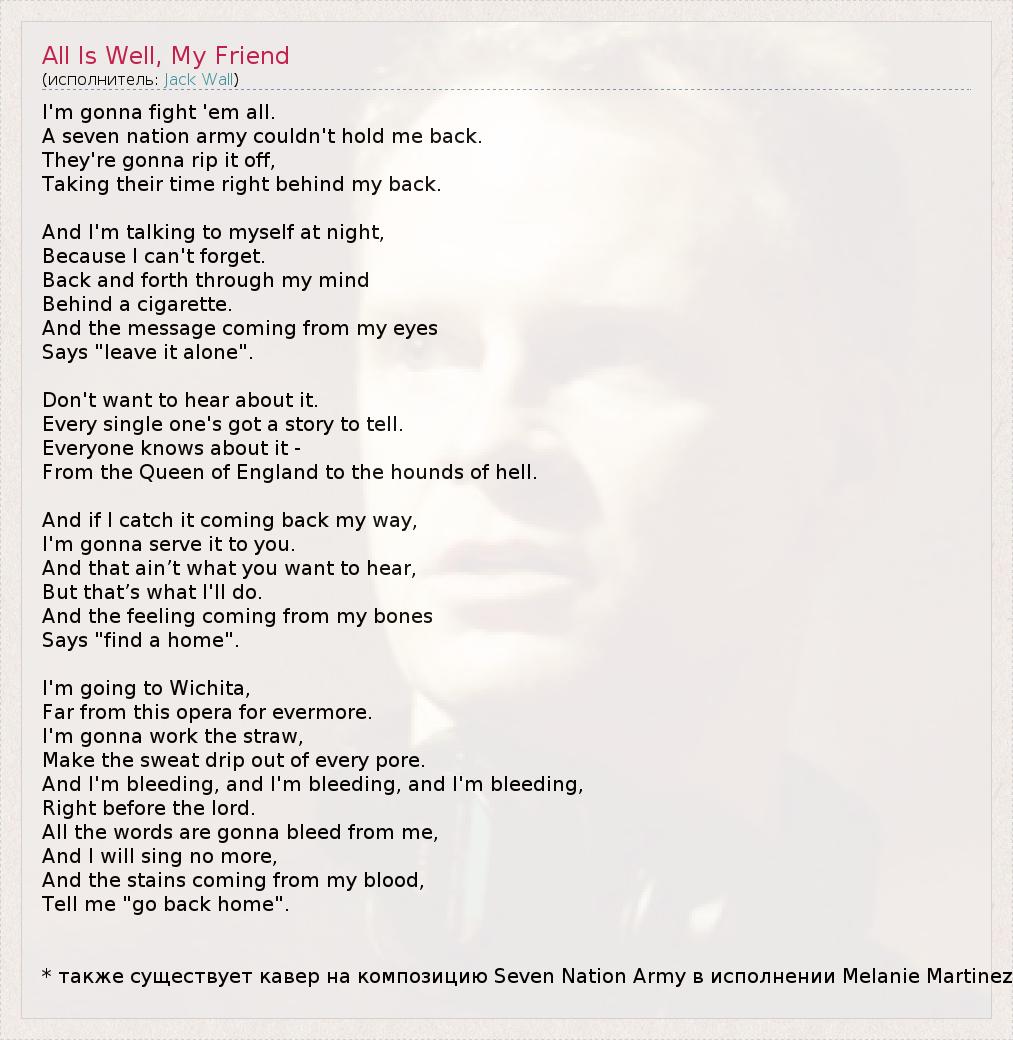 ГлавнаяИсполнителиJack WallAll Is Well, My Friend
