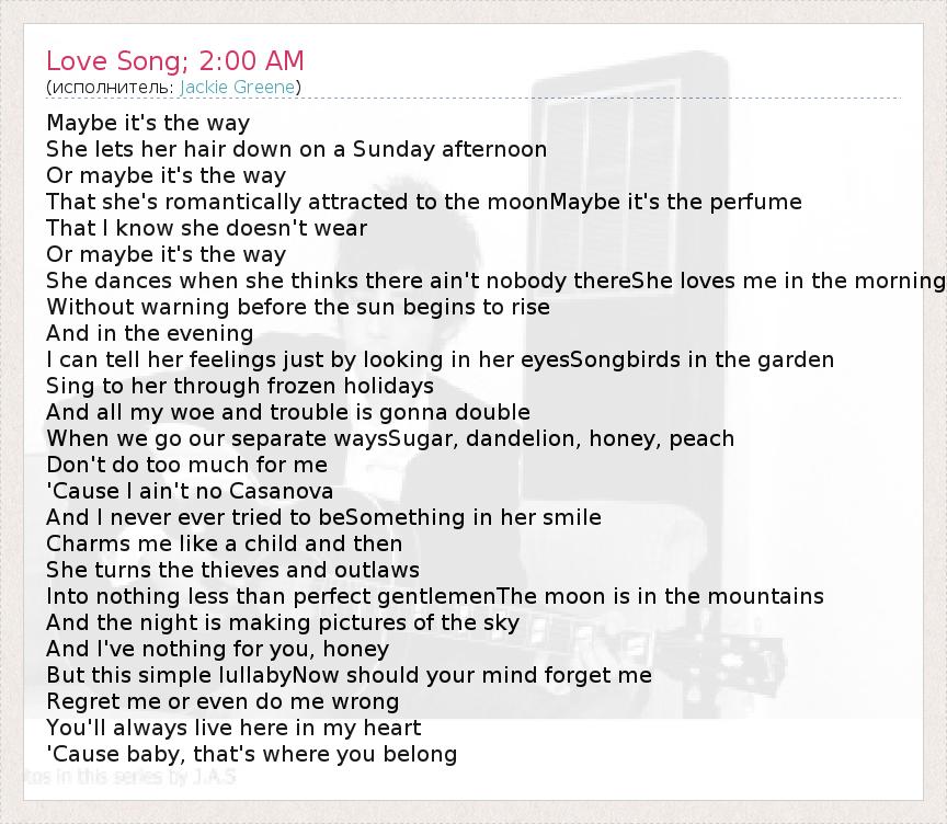 А как ты думаешь, о чем песня "Love Song; 2:00 AM" ?