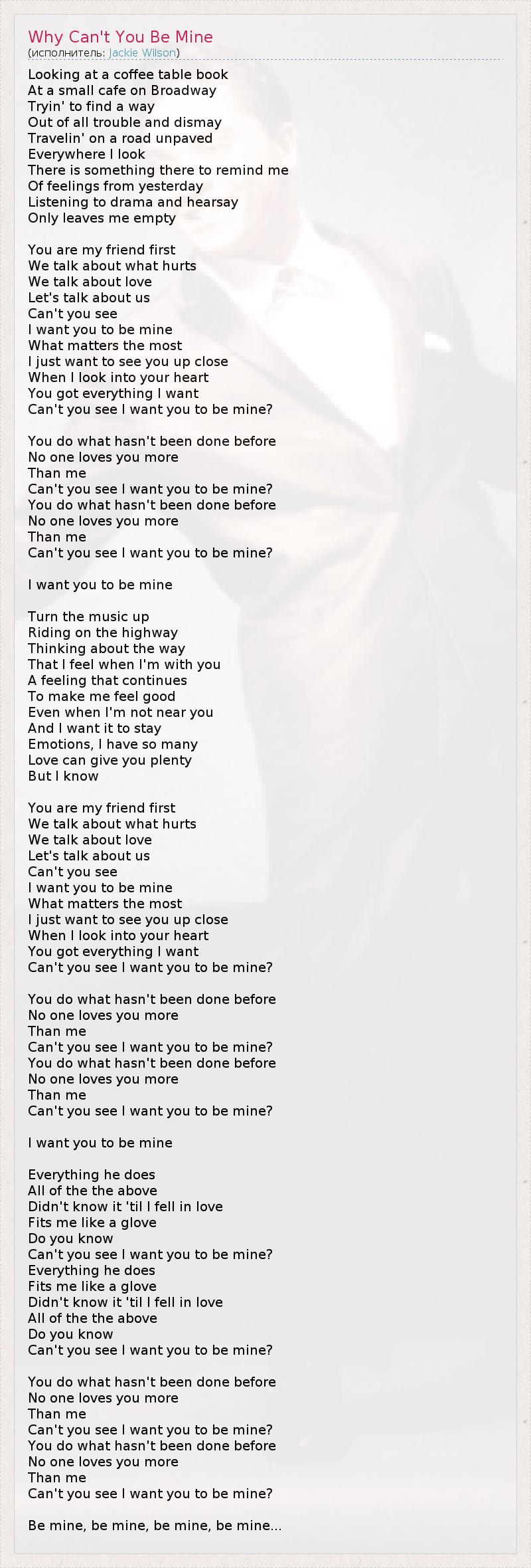 А как ты думаешь, о чем песня "Why Can't You Be Mine" ?