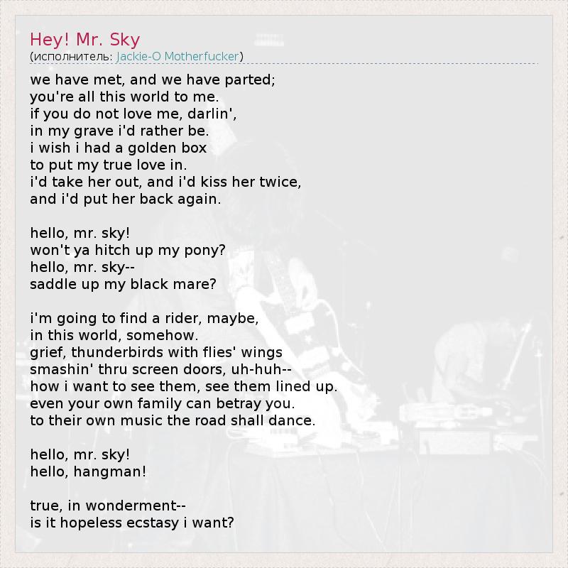 А как ты думаешь, о чем песня "Hey! Mr. Sky" ?