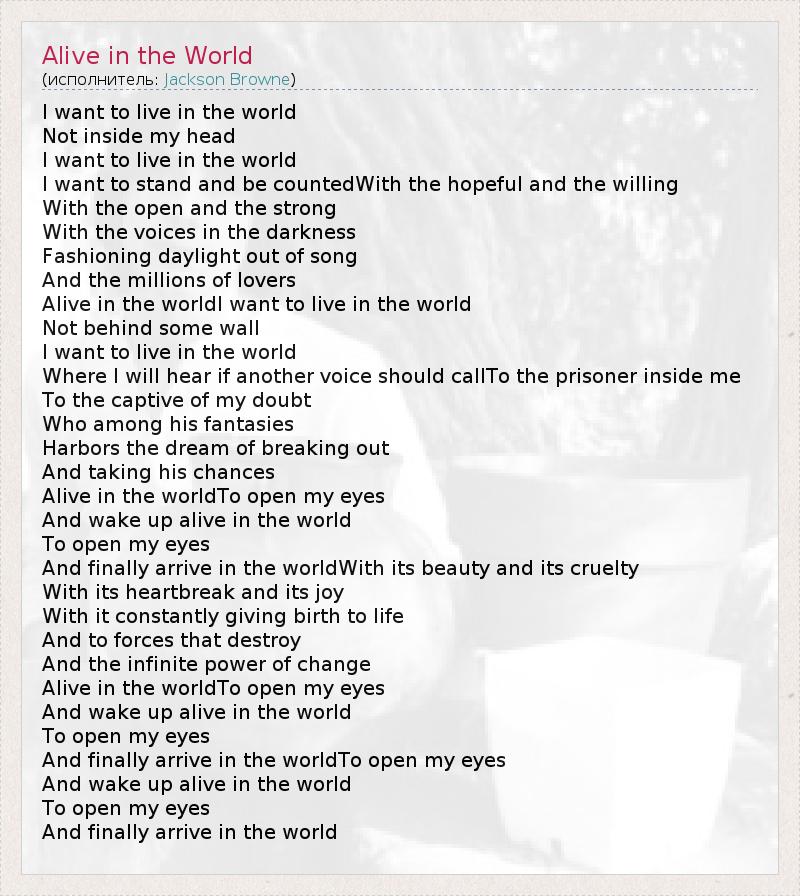 Alive in the worldI want to live in the world