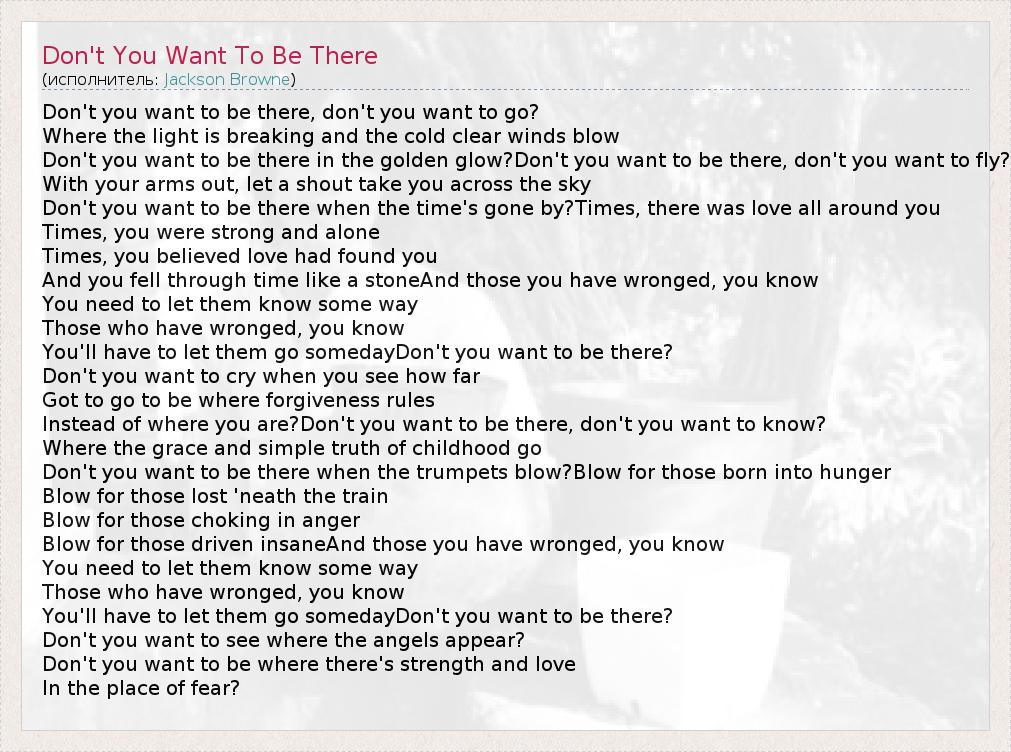 А как ты думаешь, о чем песня "Don't You Want To Be There" ?
