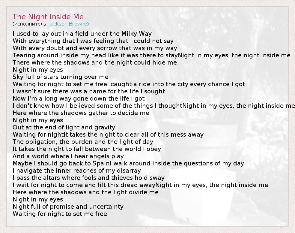 А как ты думаешь, о чем песня "The Night Inside Me" ?