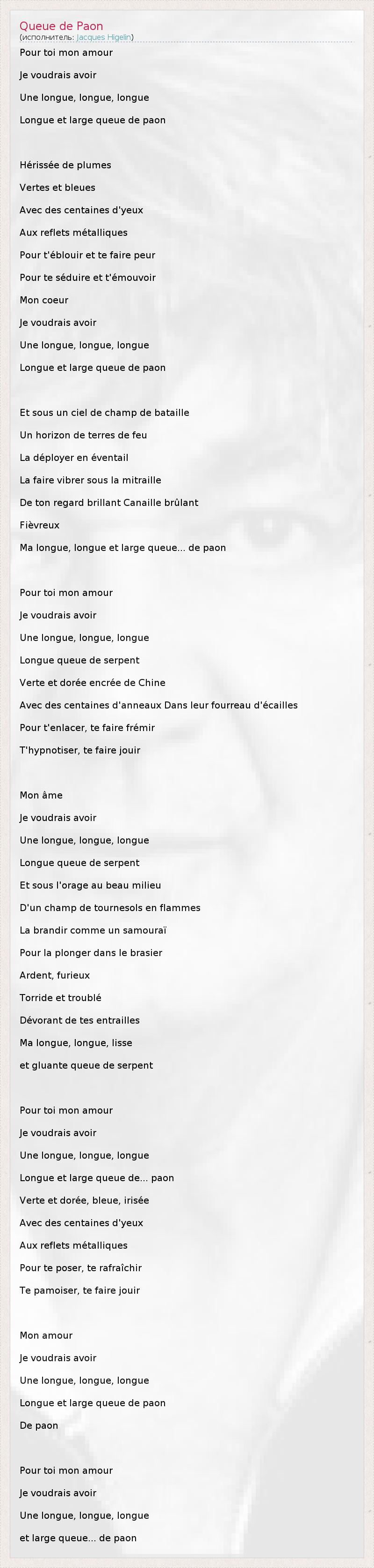 А как ты думаешь, о чем песня "Queue de Paon" ?
