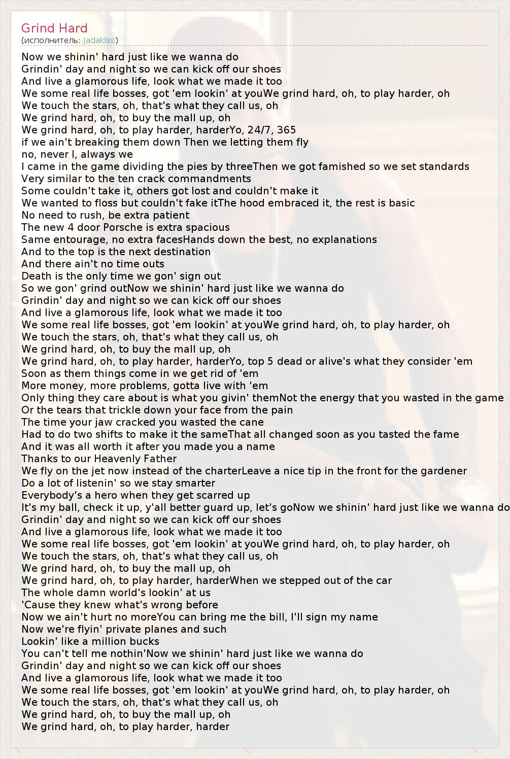А как ты думаешь, о чем песня "Grind Hard" ?