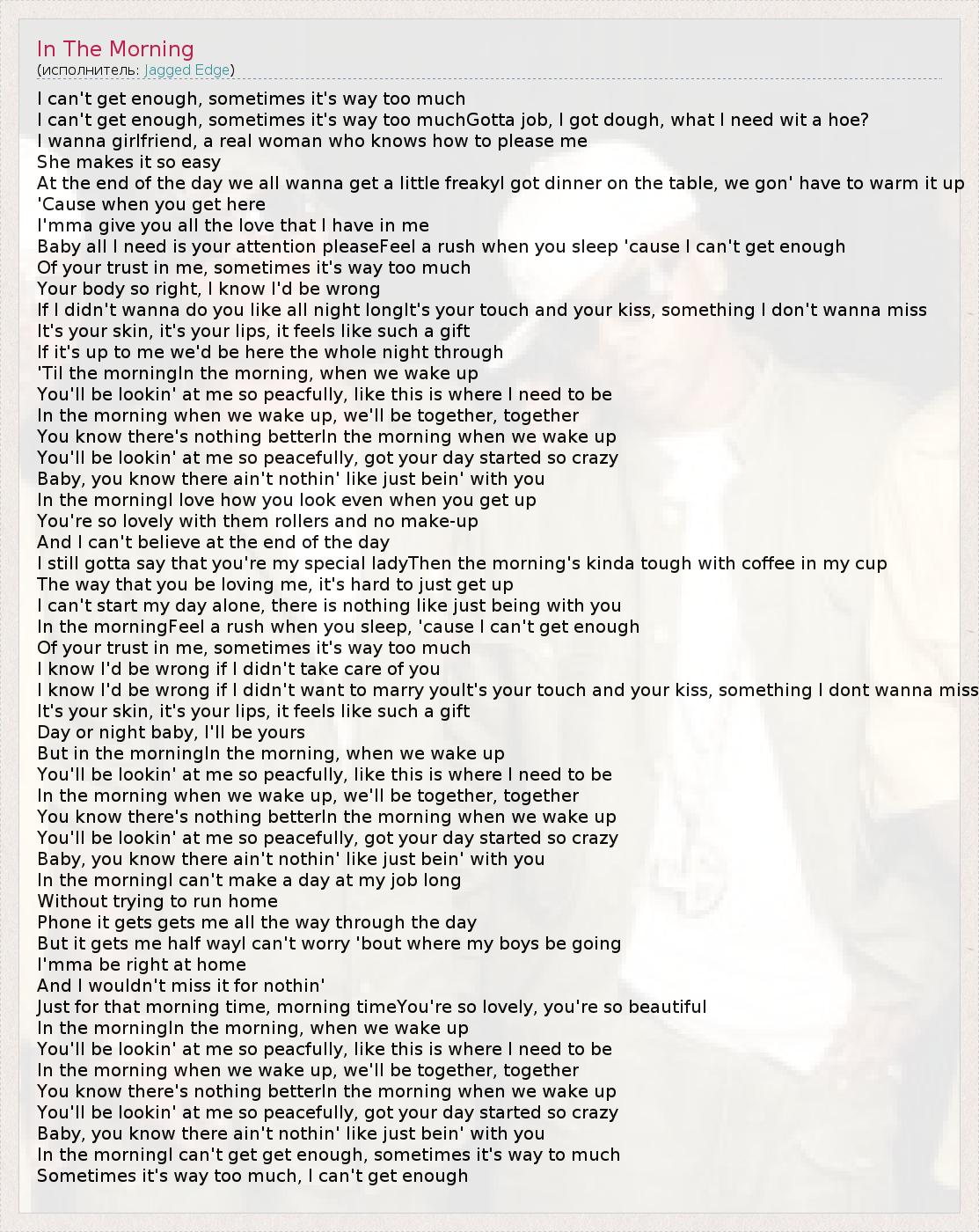 In the morningFeel a rush when you sleep, 'cause I can't get enough