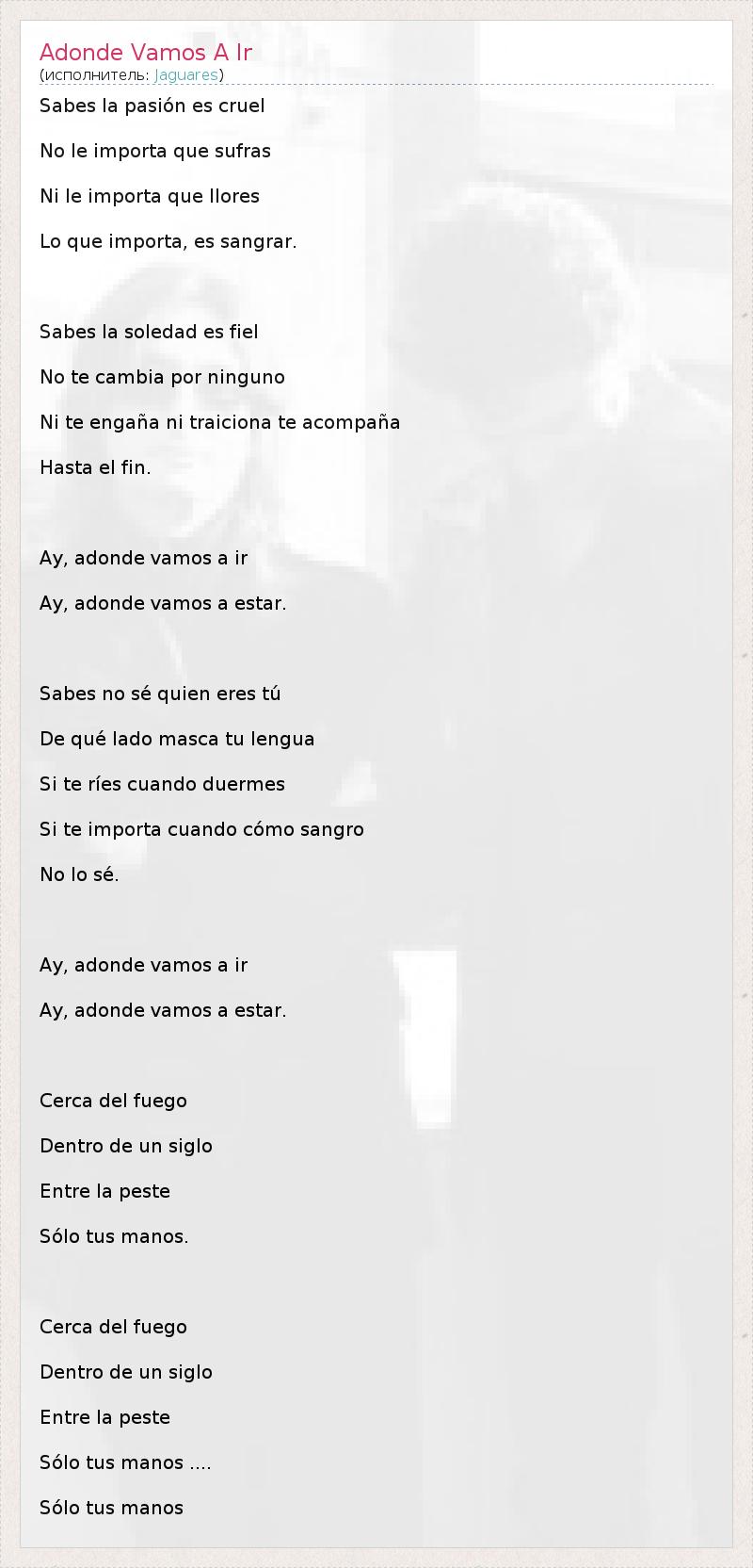 А как ты думаешь, о чем песня "Adonde Vamos A Ir" ?