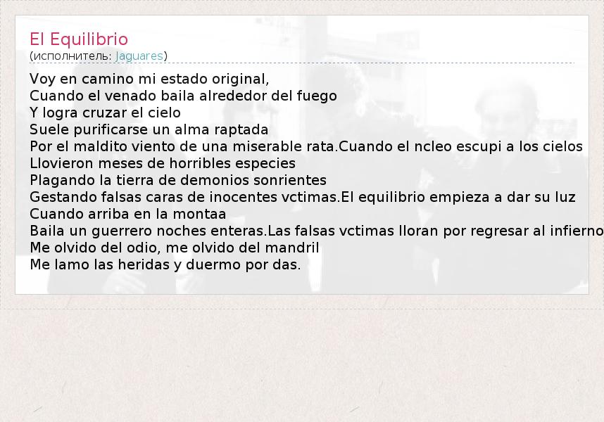 А как ты думаешь, о чем песня "El Equilibrio" ?