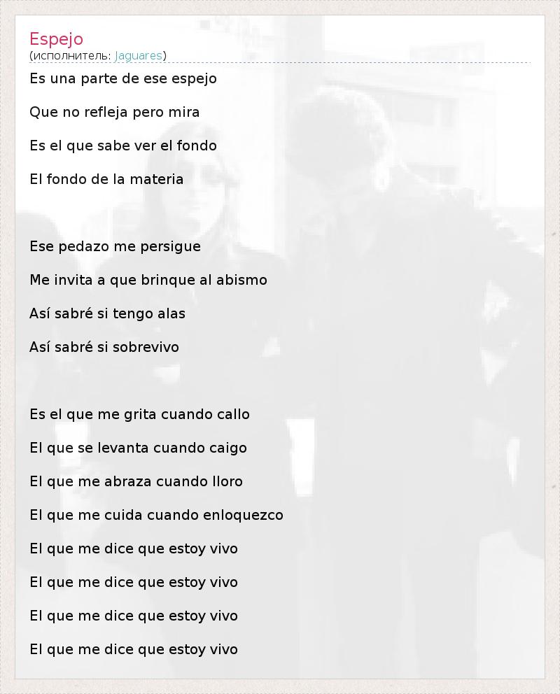 А как ты думаешь, о чем песня "Espejo" ?