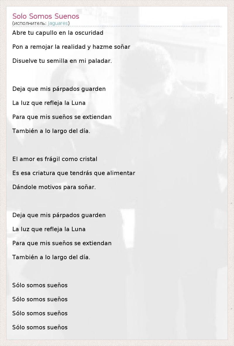 А как ты думаешь, о чем песня "Solo Somos Suenos" ?