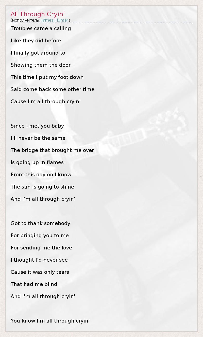А как ты думаешь, о чем песня "All Through Cryin'" ?