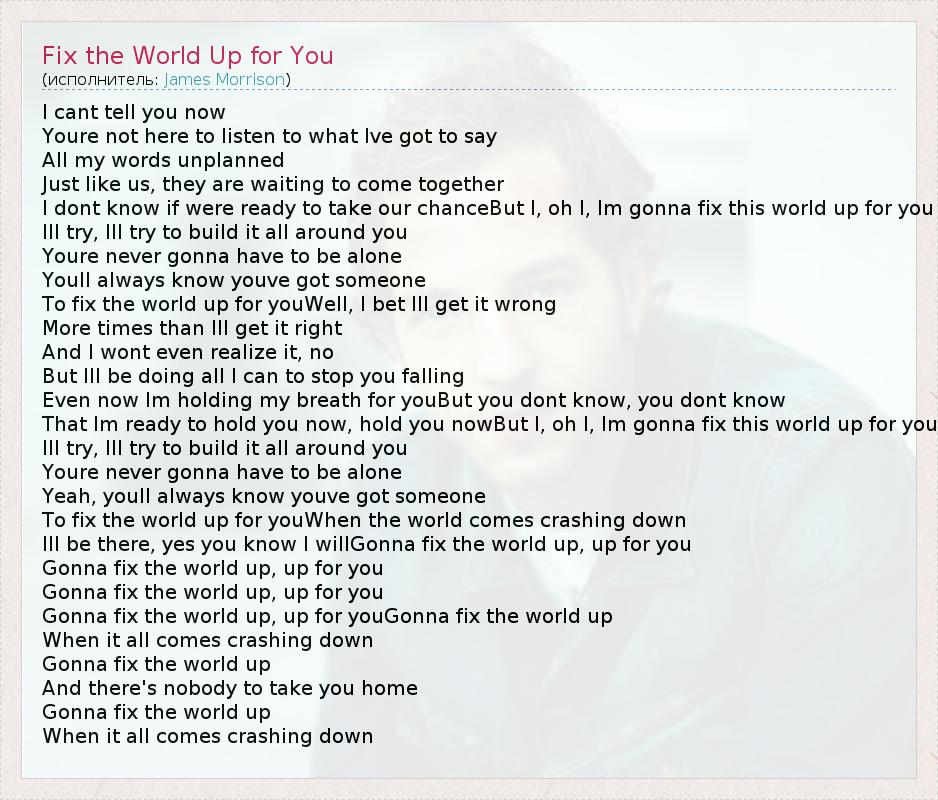 А как ты думаешь, о чем песня "Fix the World Up for You" ?