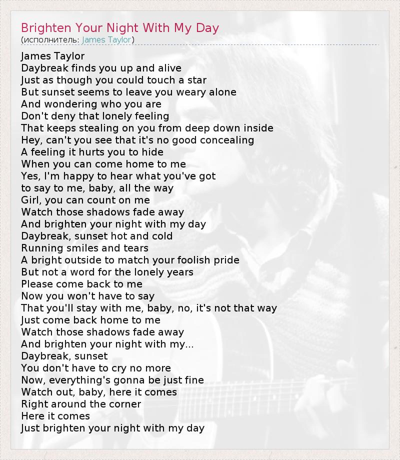 ГлавнаяИсполнителиJames TaylorBrighten Your Night With My Day
