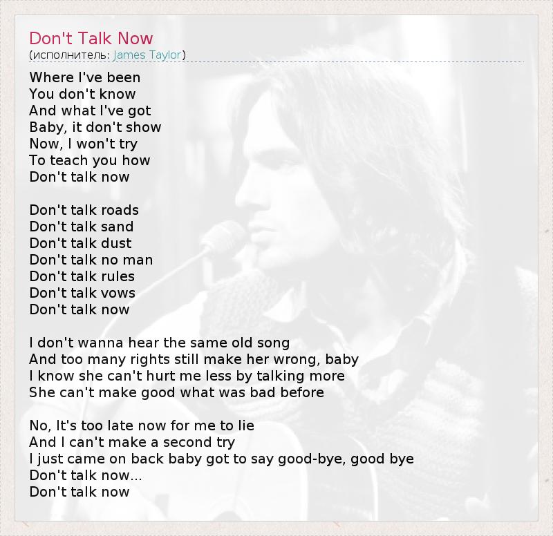 А как ты думаешь, о чем песня "Don't Talk Now" ?
