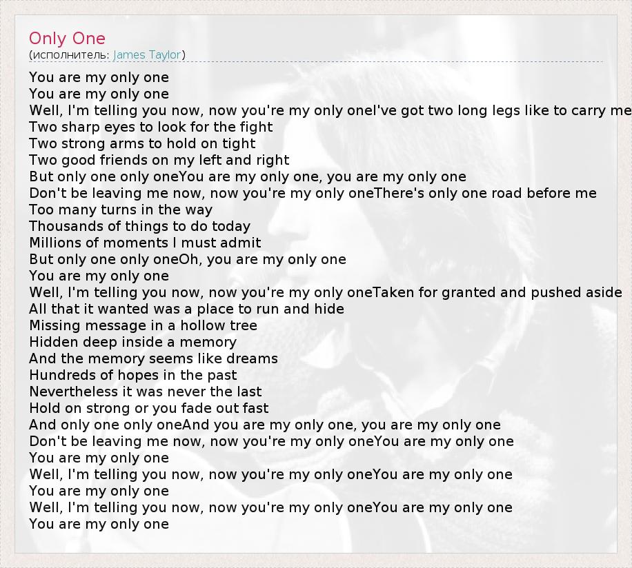 But only one only oneYou are my only one, you are my only one
