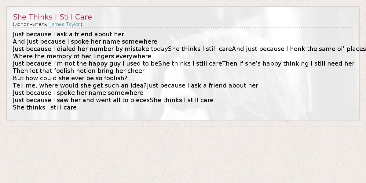 ГлавнаяИсполнителиJames TaylorShe Thinks I Still Care