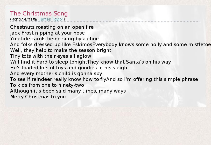 А как ты думаешь, о чем песня "The Christmas Song" ?