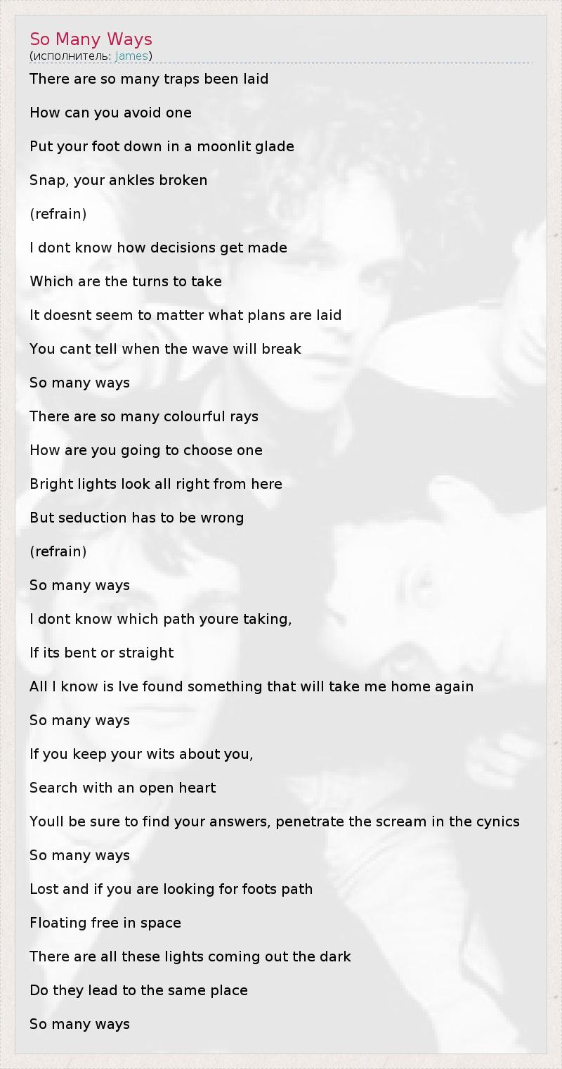 А как ты думаешь, о чем песня "So Many Ways" ?