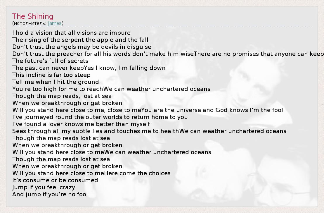 Will you stand here close to me, close to meYou are the universe and God knows I'm the fool