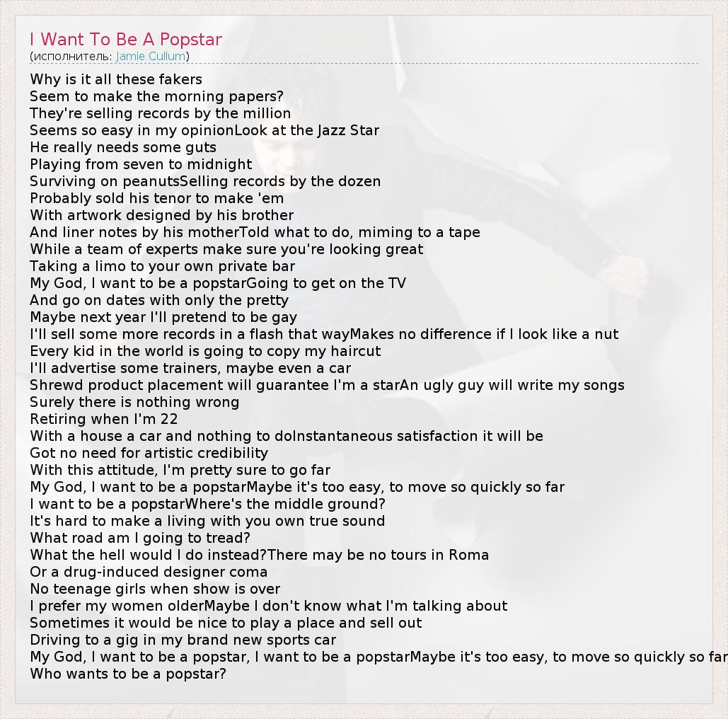 А как ты думаешь, о чем песня "I Want To Be A Popstar" ?